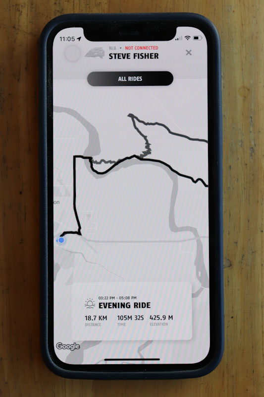 I made multiple attempts to contact ABUS through a brand rep, but after a month and a half I have not received any response. There is a slim chance I’ve missed something in the app, but I’m fairly certain not all the functions were working properly. I strongly suspect the app is supposed to save maps for all rides (given there is an ‘All Rides’ button), but with no contact from ABUS I can’t say why I can only see my most recent map.