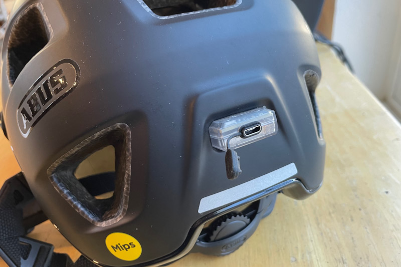 The QUIN chip charges via a standard micro-USB cable (not included). You do have to charge the chip in the helmet, as it is not intended to be removed! Charging takes 60-180 minutes depending on the power source. ABUS says a fully charged battery should last six weeks with two hours use per day, and I’ve only charged my helmet a few times over several months.