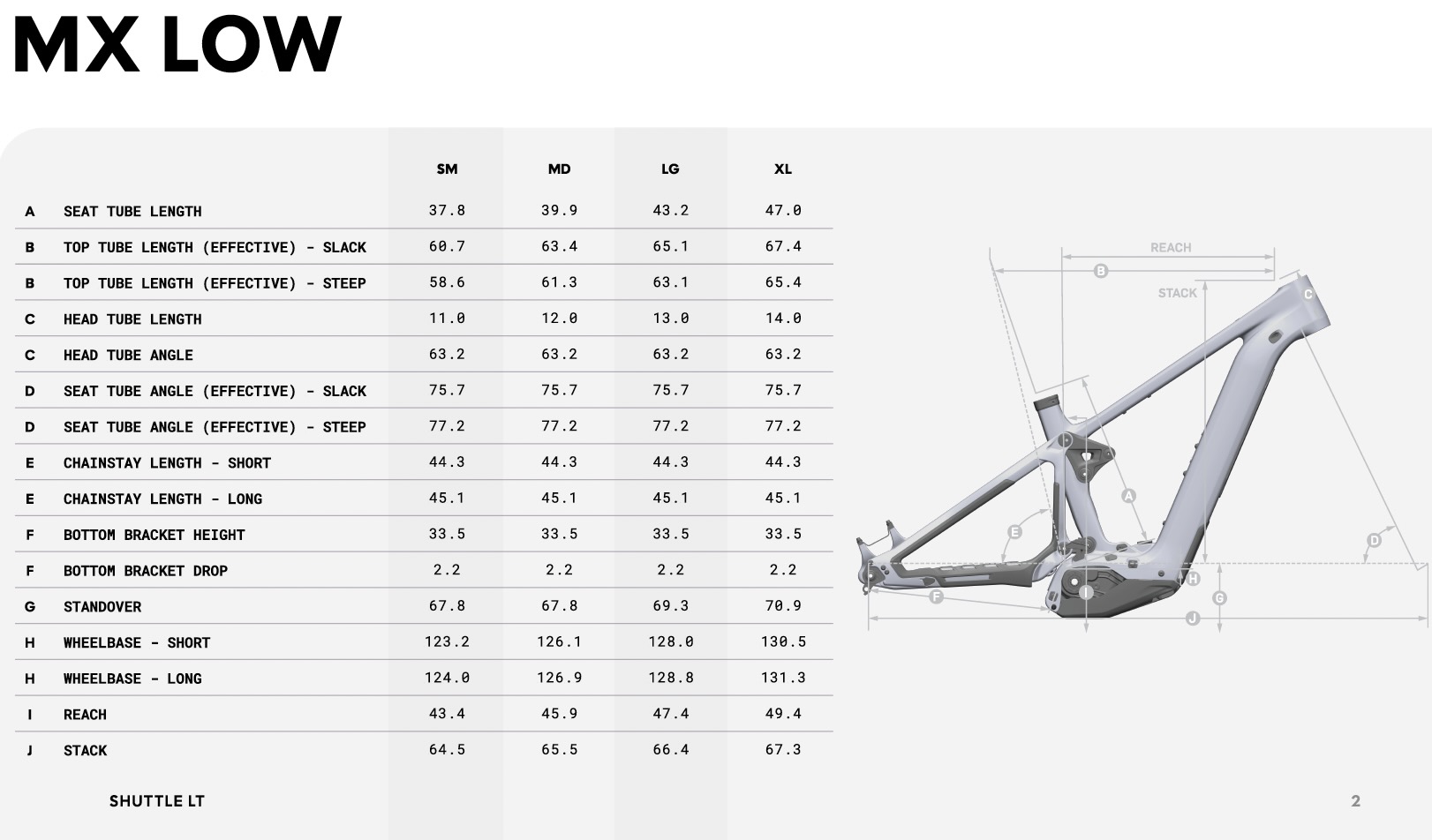 An additional geometry flip-chip in the linkage is intended to be used primarily to maintain geometry when switching between wheel sizes. Stock builds come with MX wheels, and the High setting is recommended for crank clearance with a smaller rear wheel and a low bottom bracket. Switching to the low setting slackens the head tube angle by 0.8 degrees and lowers the already low BB height by 11mm. However, if switching to a 29” rear wheel, the Low position preserves the bike’s geometry.
