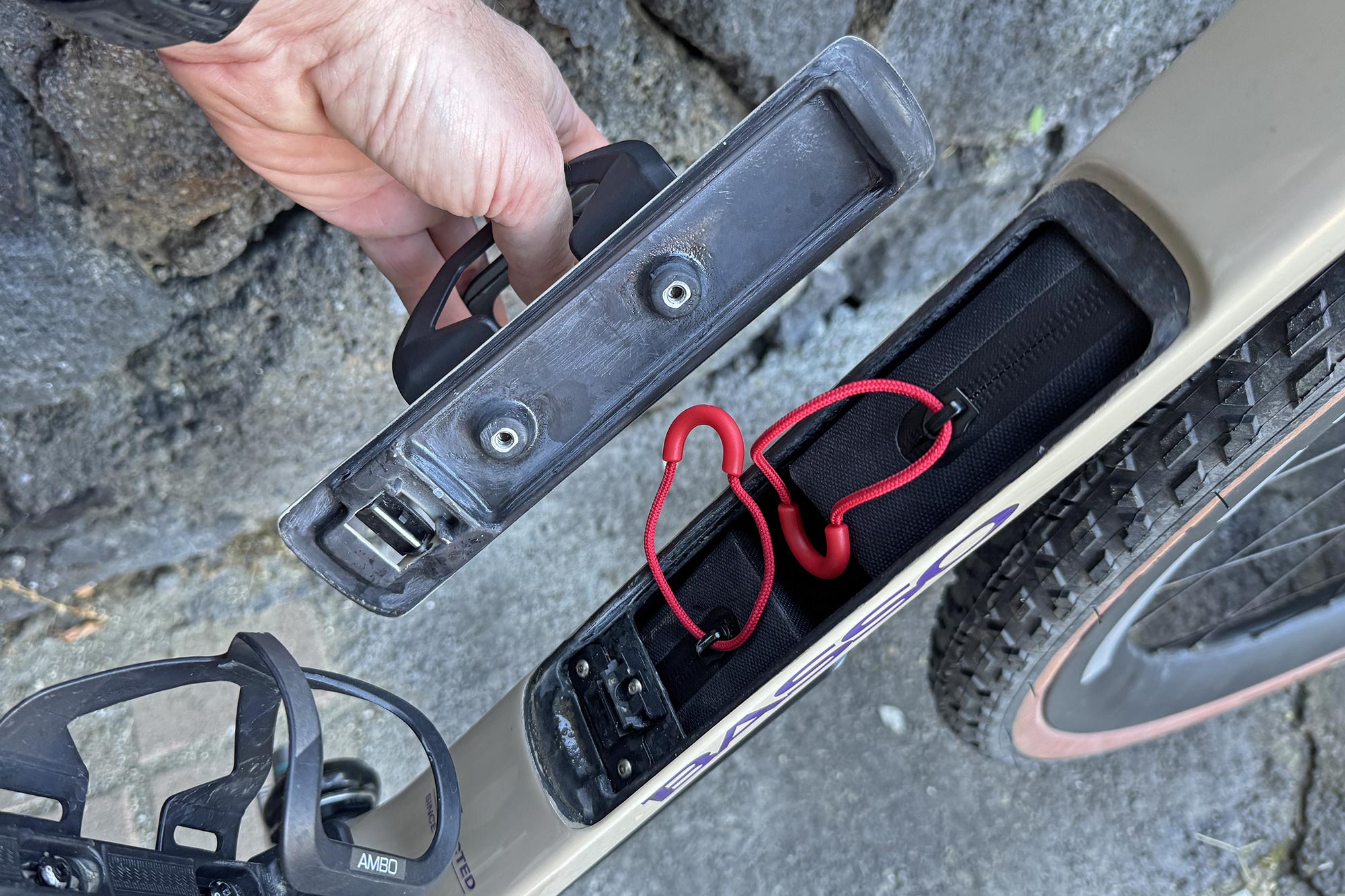 A new internal storage compartment secured by a Fidlock closure helps riders haul more gear. And the bikes come with two waterproof bags to make it easy to store ride essentials inside of the relatively narrow downtube. Plus, the bike now adds bolt-on mounts above and below the top tube to secure bags without the need for straps.