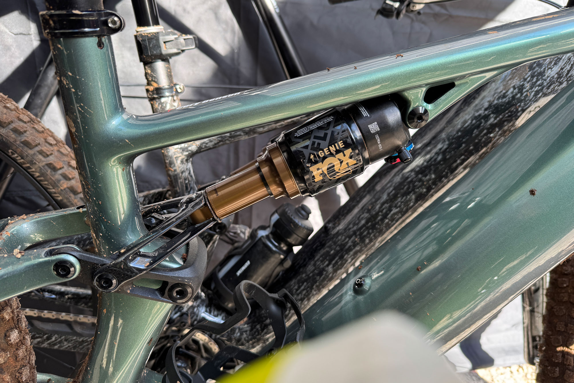 Suspension-wise, the Levo R opts for a simpler Genie air shock without a piggyback. But it’s still a Genie, so you get two separate air chambers inside that combine through the travel to give a more linear feel through the early to mid travel for plenty of predictable support. Then, Genie delivers a progressive curve at the end to make bottom outs almost impossible no matter how big a hit you take, as long as you get sag right to start.