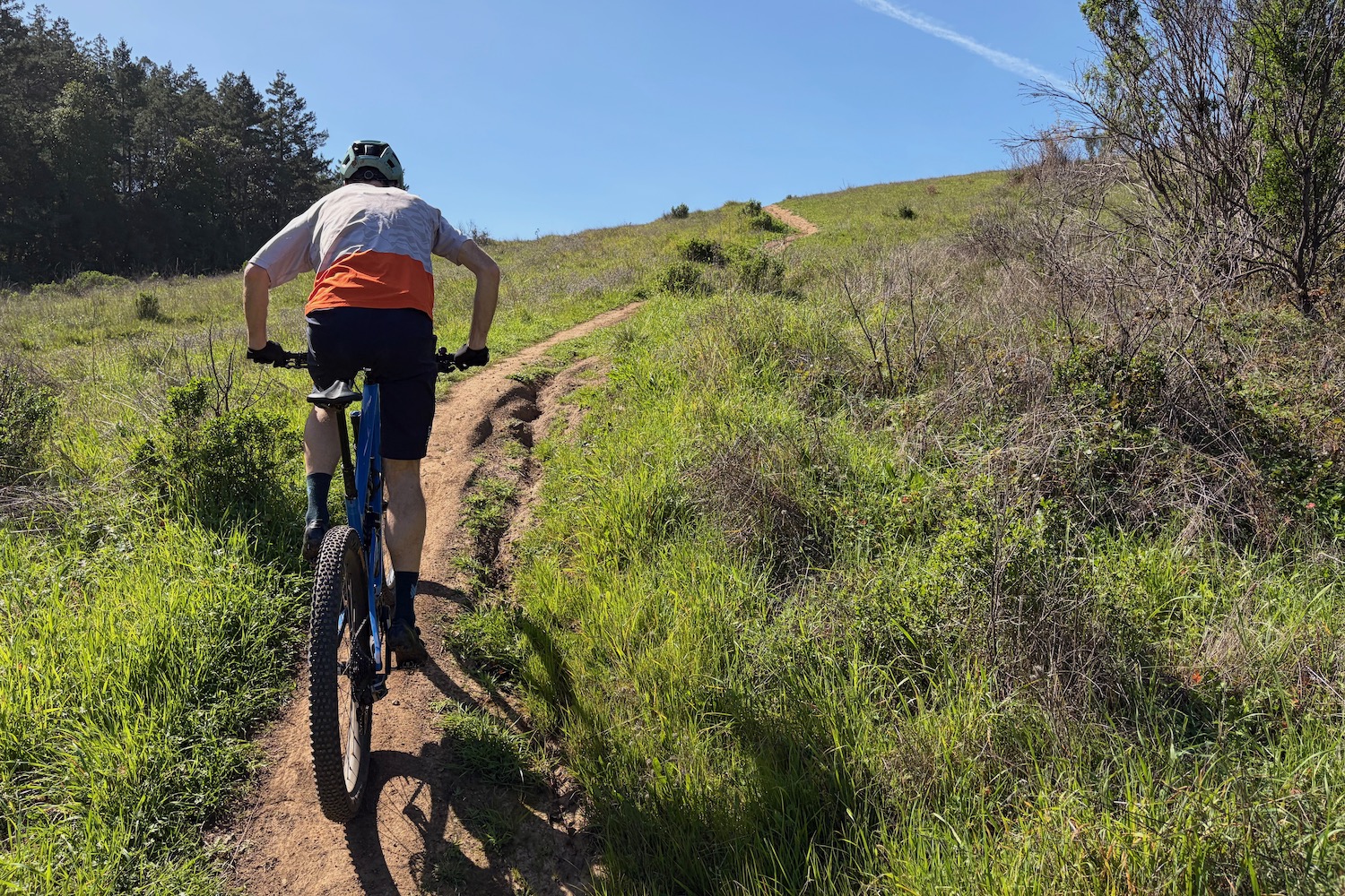 As we got to the top of our main climb, we dipped onto a mostly flat but rolling, twisty section of singletrack where Colin picked up the pace and I tried to follow. The Ripley SL was clearly in its element and just ate it up. It darted around corners and sprang forward with my short sprint efforts, dodging poison oak while trying to stick the local’s wheel. Turns out, the majority of people I’ve met who design bikes are pretty darn good at riding them, too.