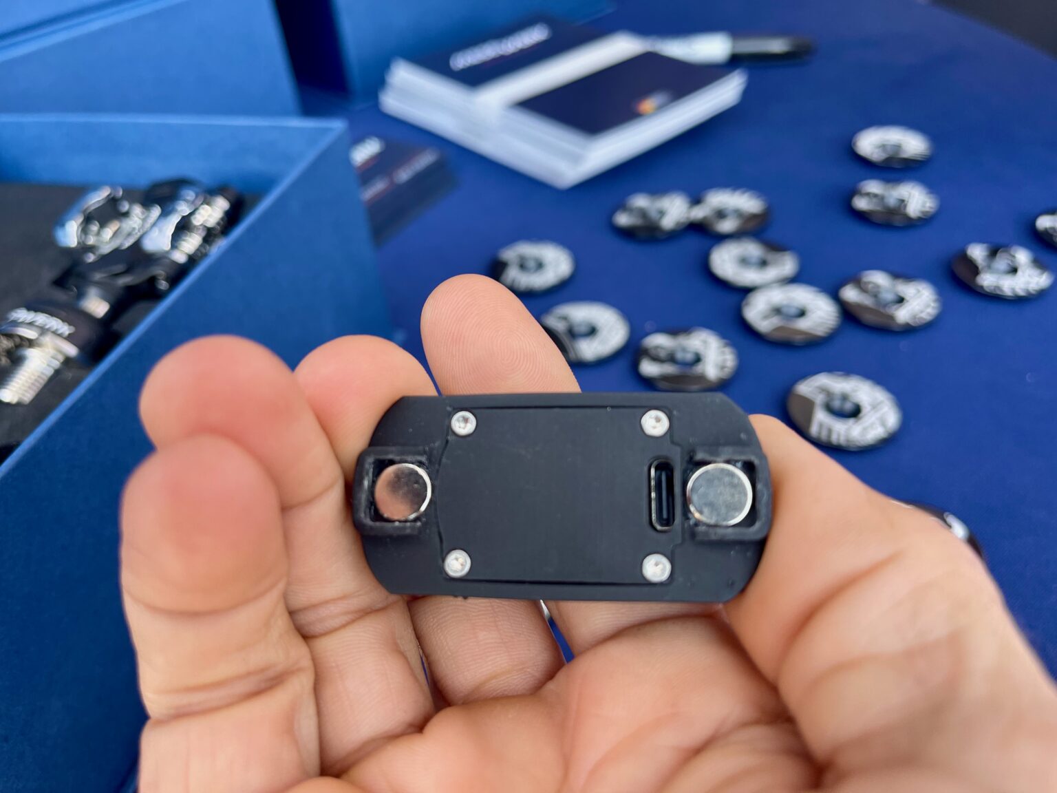 Both the pedals, and the additional light feature use a type-c charger. The pedal charger is a roubust clip style piece (simliar to the Wahoo/Speedplay design) that clips to the pedal and charges via two magnetic prongs.