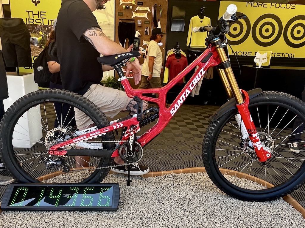 I know a Santa Cruz V10 isn’t very uncommon. However, Jackson Goldstone’s v10 is pretty rare! It was on display at the Fox tent, along with Jackson’s Speedsuit. I can confirm that it wasn’t Jackson himself on display in his race kit, unless he is just able to hold still for a really, really long time.